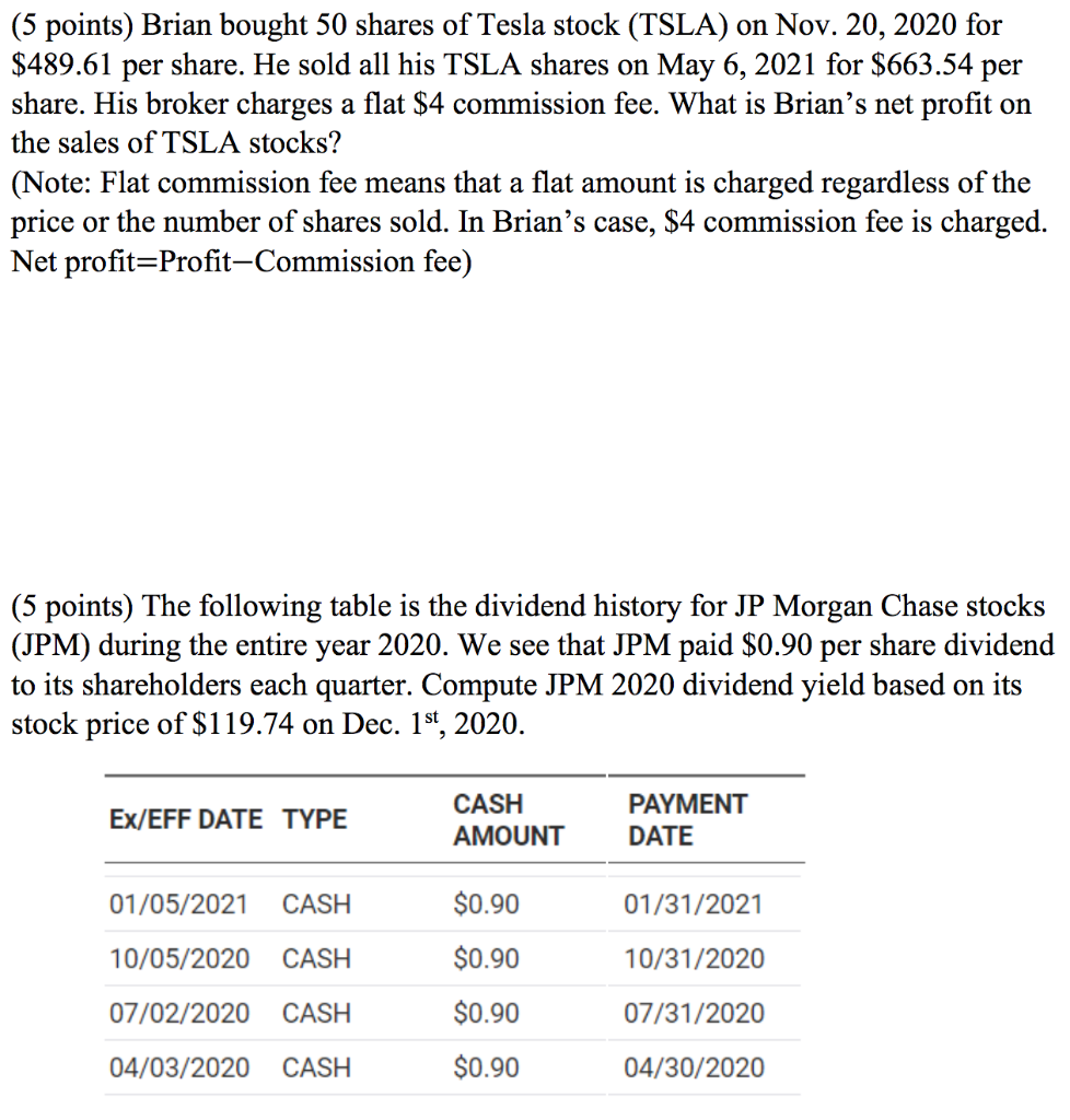 Solved 5 Points Brian Bought 50 Shares Of Tesla Stock Chegg Com